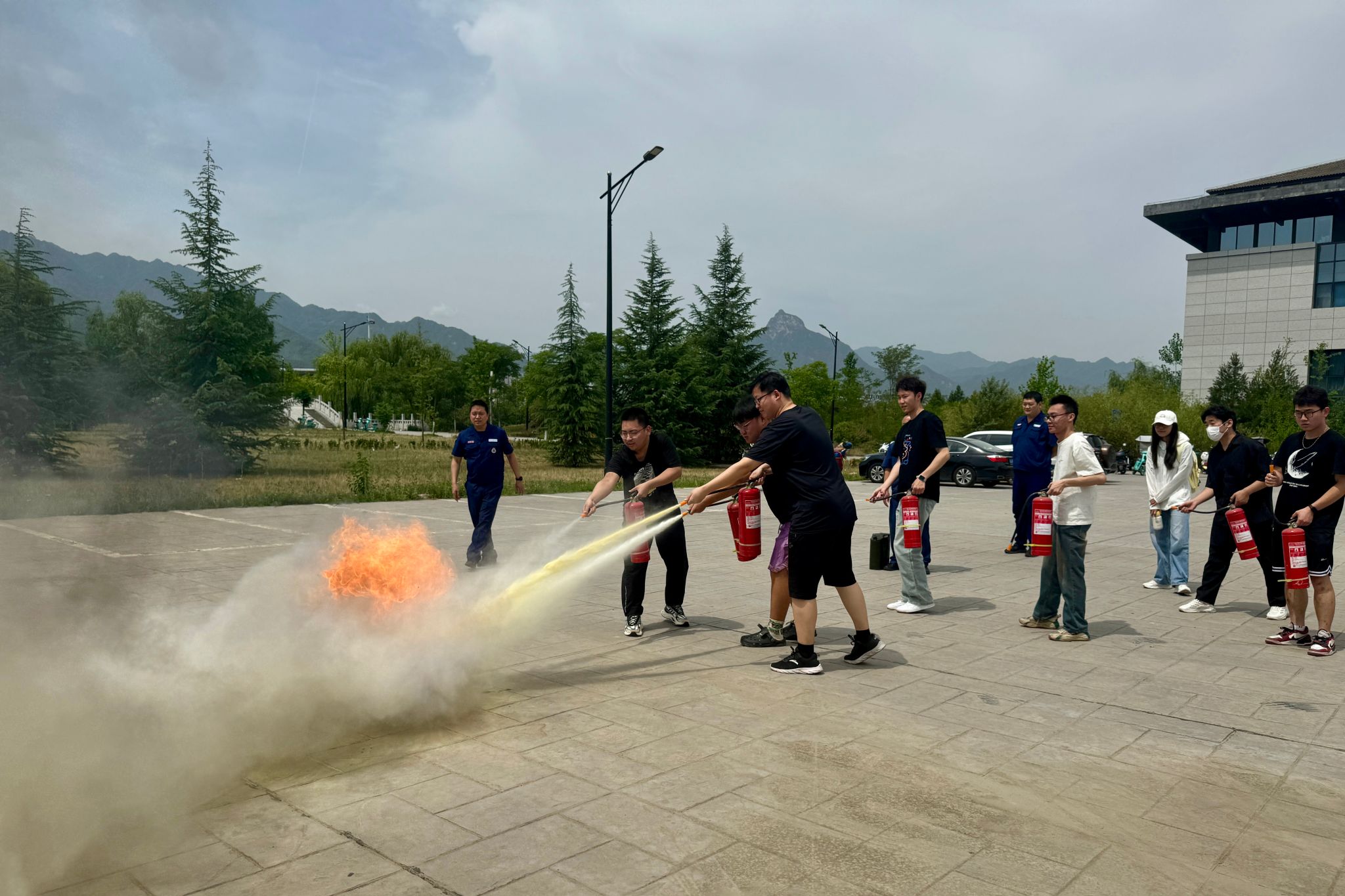 在消防技能现场教学环节,胡涛就灭火器的正确使用方法和注意事项进行了现场讲解和操作示范,并安排大家分组进行了实际操作。