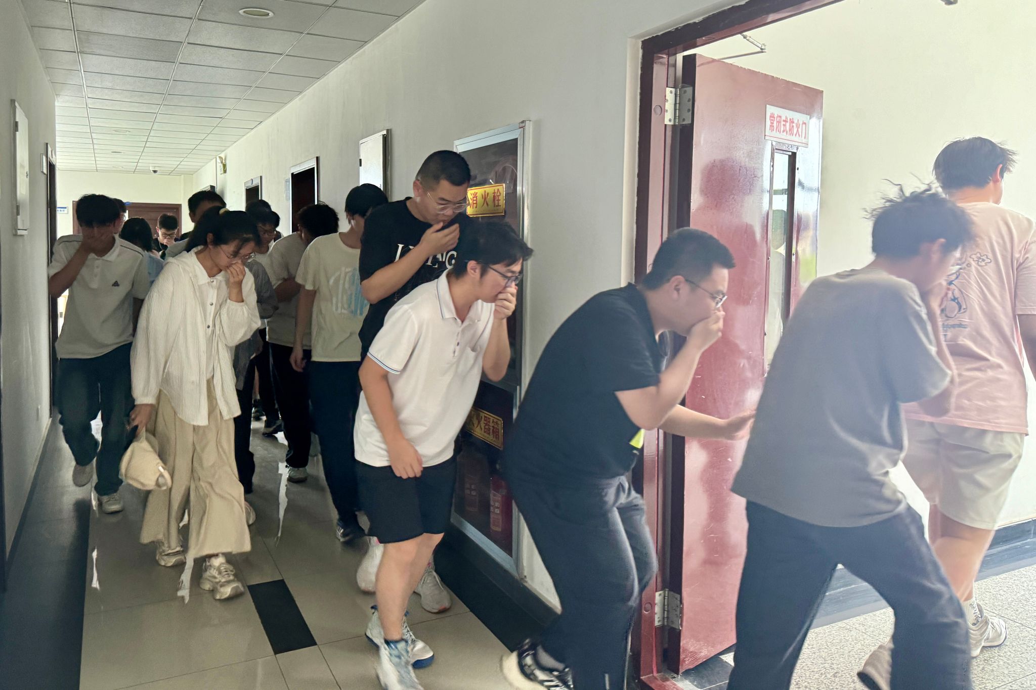 讲座结束后进行了消防安全逃生演练,整个疏散过程有条不紊,迅速有序,参加师生按照“捂鼻、弯腰、靠墙走”的标准逃生姿势,沿着安全通道快速有序撤离至指定区域。