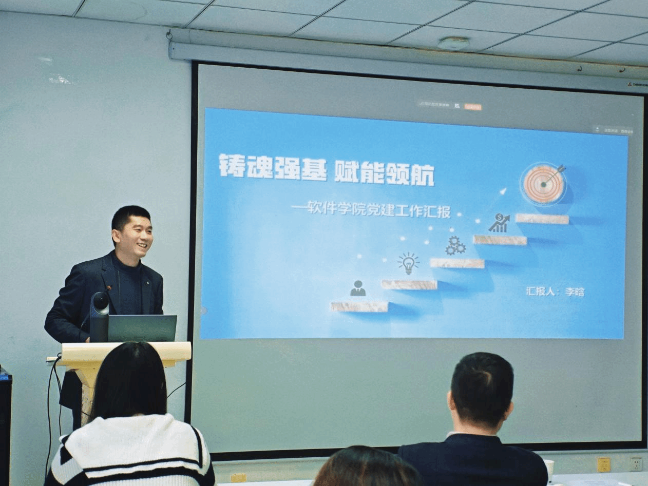 院长郑江滨从党建引领、人才培养、科学研究、师资建设、国际合作、组织保障等六方面系统总结了学院2025年度重点工作与成效并进行个人述职。李晗以“铸魂强基 赋能领航”为题,从理论武装、强基固本、党建引领等方面汇报了年度党委工作并进行个人述职。副院长马春燕、郭培荣及党委副书记陈博结合分管工作,分别进行述职。参会人员以无记名方式对学院领导班子成员进行民主测评和打分。