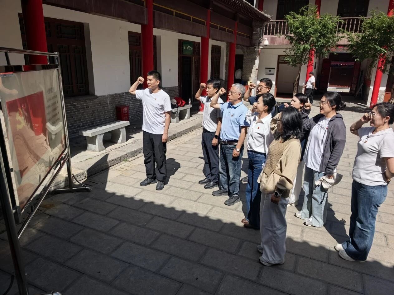 下午,党员们走进鄂豫陕苏维埃政府葛牌镇纪念馆。这里曾是红军在关中地区最早的红色政权诞生地,见证了革命先辈在极其艰苦条件下发动群众、建立根据地的光辉历程。在实景教学中,大家认真聆听红二十五军在此浴血奋战的英雄事迹,深刻体会到老一辈革命家艰苦奋斗、密切联系群众的优良作风。在纪念馆前,面对鲜红的党旗,全体党员庄严肃立,举起右拳,重温入党誓词。铿锵有力的誓言在红色旧址上空回荡,进一步坚定了党员教师为党育人、为国育才的初心使命。